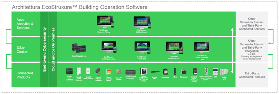La piattaforma EcoStruxure si articola su tre livelli integrati: